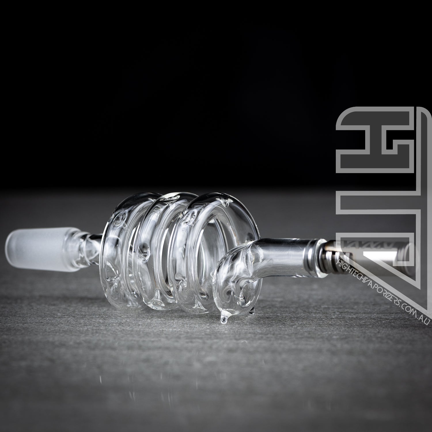 Twist up your Dynavap session with this glass NippleSnake stem which features a small airport, 14mm connection and indents that are pushed into the glass right through the spiral section. The indents contribute to the cooling affect the NippleSnake has. It offers a simple yet smooth experience when paired with a dynavap tip and your favourite 14mm bubbler.