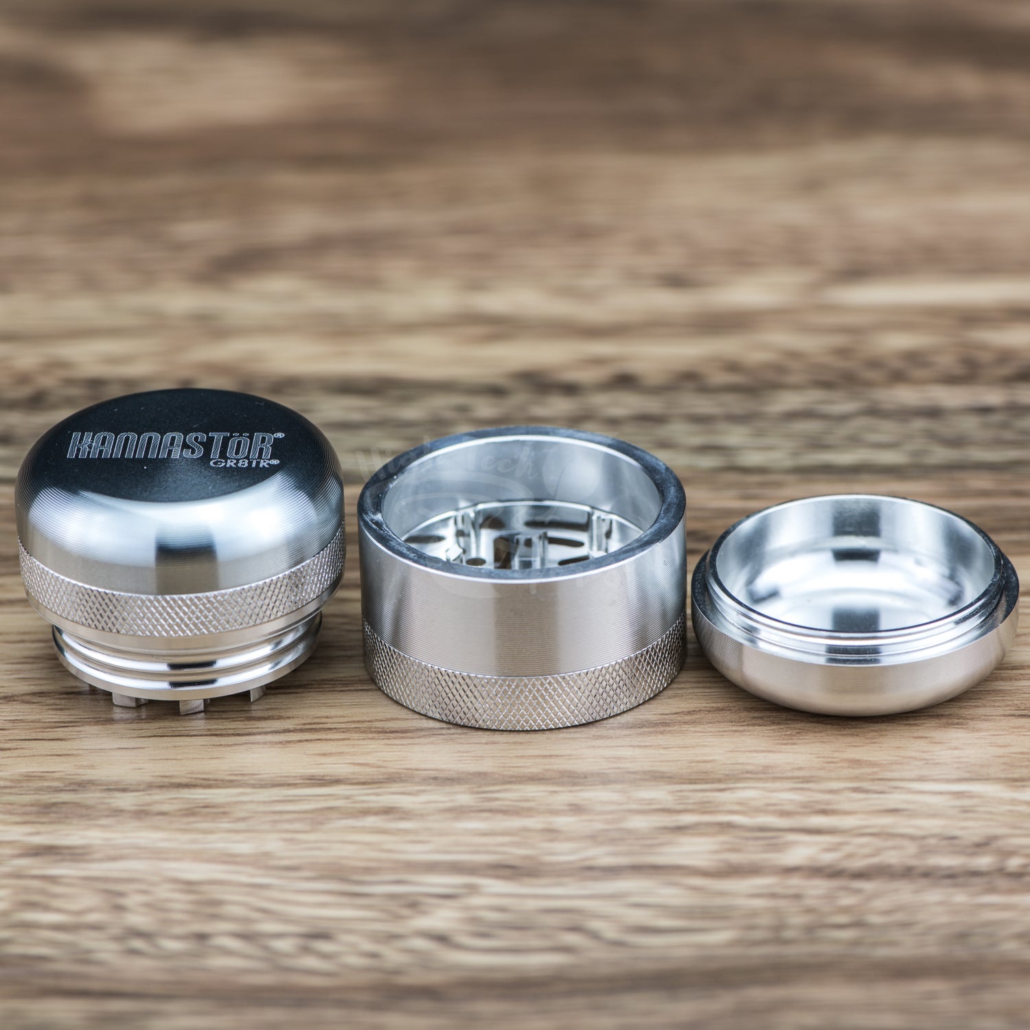 Putting the STöR in Kannastör® – Storage was a major consideration with the new GR8TR® design. Not only have we added storage for a second GR8TR® plate, we have also added storage inside the grinder top that can be used for either course or fine finished grounds or for unground material wanted for a future session. Now you can grind, sift and store more then just one blend and/or style of grind.